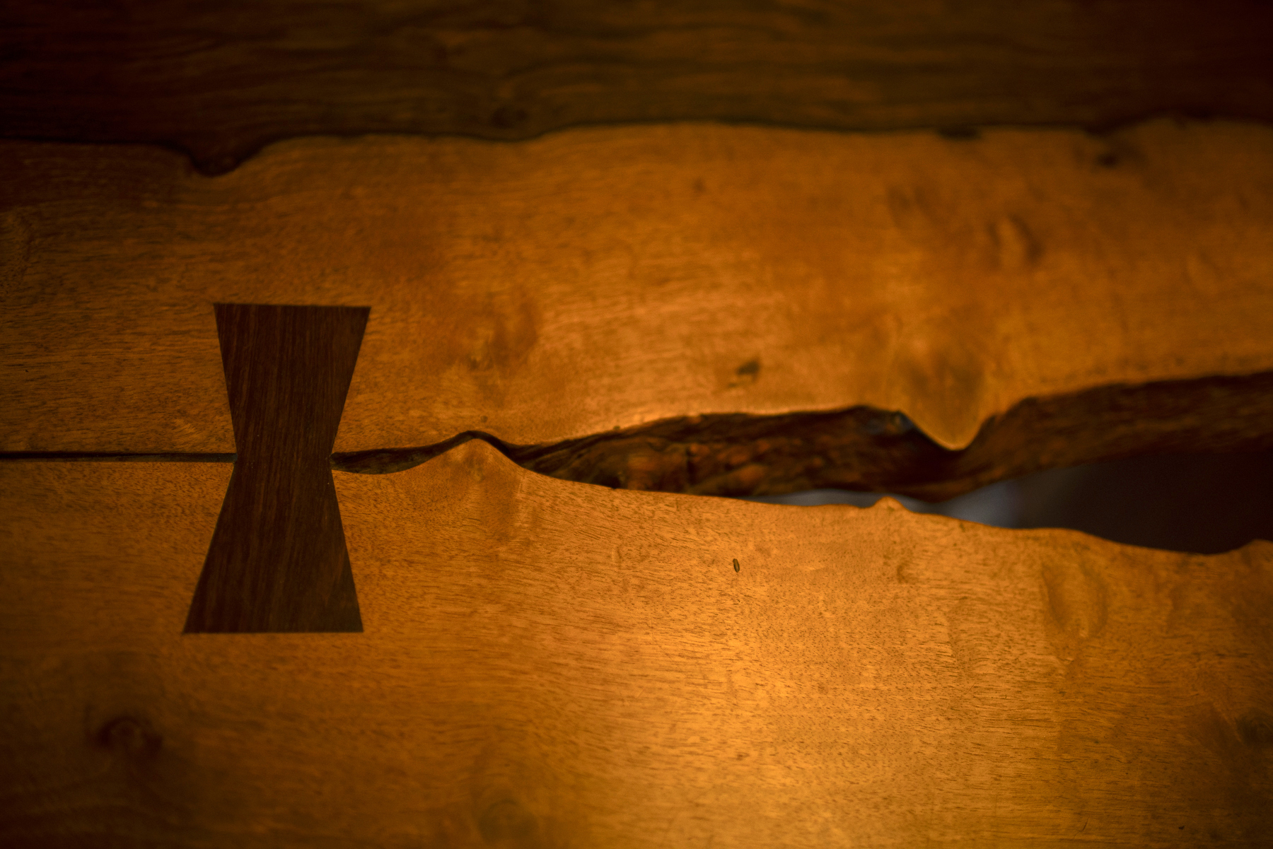 While in Minidoka, George used wood scraps from the construction of the camp and packing crates to make furniture in order to make conditions more bearable. The camp was surrounded by bitter brush, a tough, drought-tolerant shrub. Others in the camp collected and polished the branches of the shrub, and George used them as interesting free-form accents on his furniture. Through the use of these materials, George’s unique woodworking style began to emerge. He embraced the imperfections and natural textures of the wood, leaving the tree’s exterior contours visible in his pieces. This approach, now known as “live edge” woodworking, was born out of George’s ability to find beauty in the overlooked.